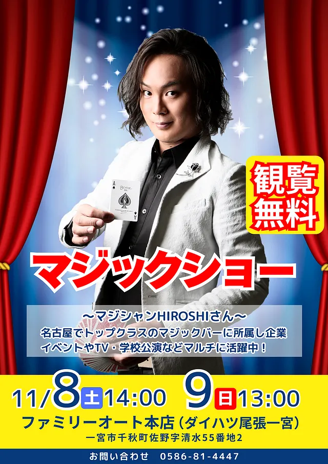 愛知で今一番勢いのある新進気鋭のマジシャンです。